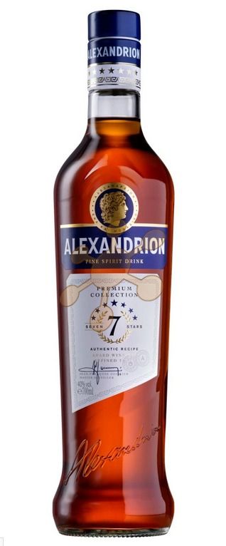 Alexandrion 7* je jemná a vyvážená zmes doplnená o vyzretý vínny destilát a zmes prírodných extraktov s jemnými dochuťami stredomorských vôní a dubového dreva.